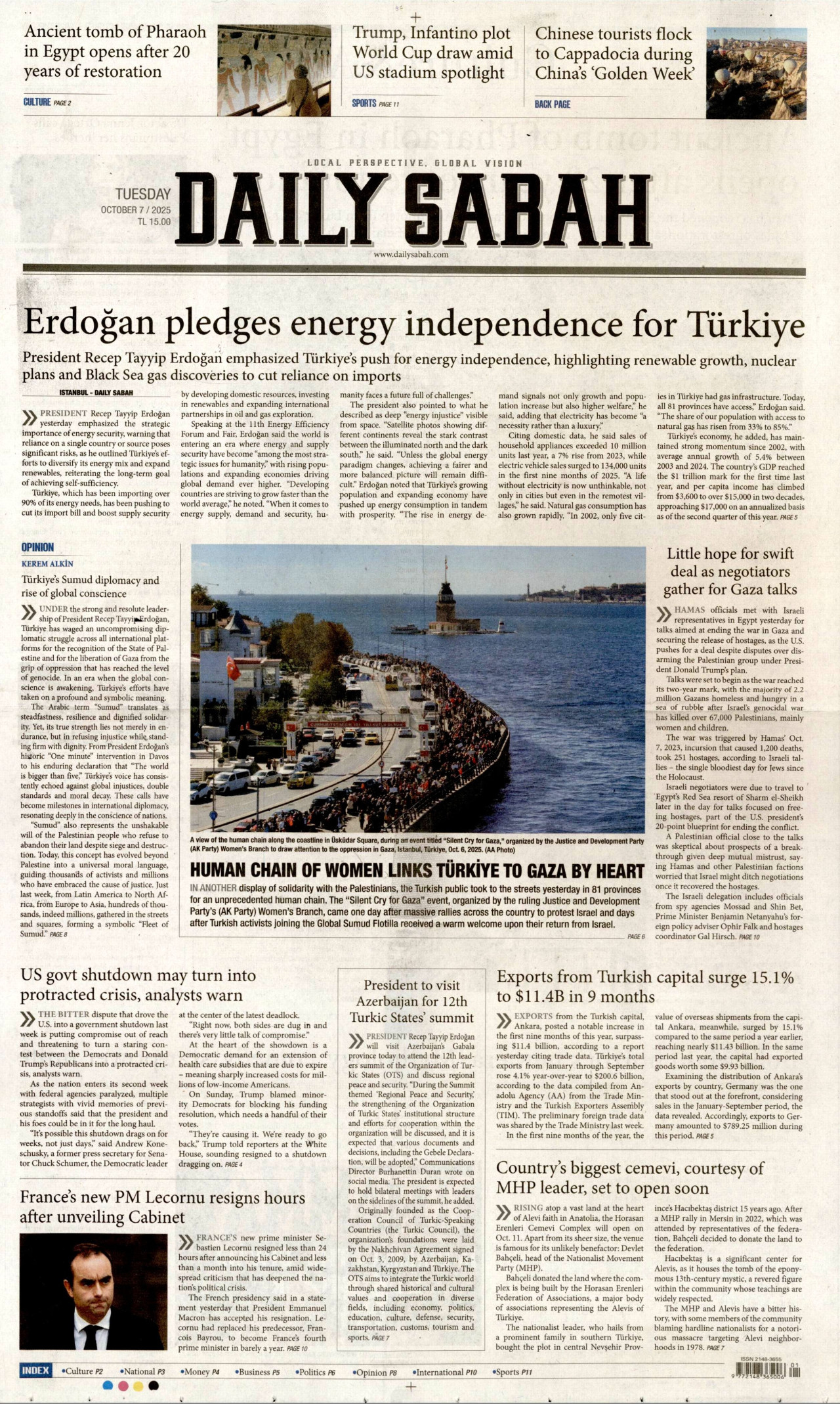DAİLY SABAH Gazetesi 07 Ekim 2025, Salı Günü Manşeti
